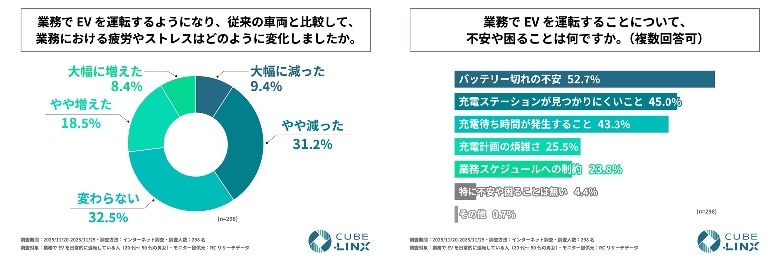 7割強がEVに肯定的ながら5割強がバッテリー切れに不安も 業務でEVを運転する人の利用実態と意識調査