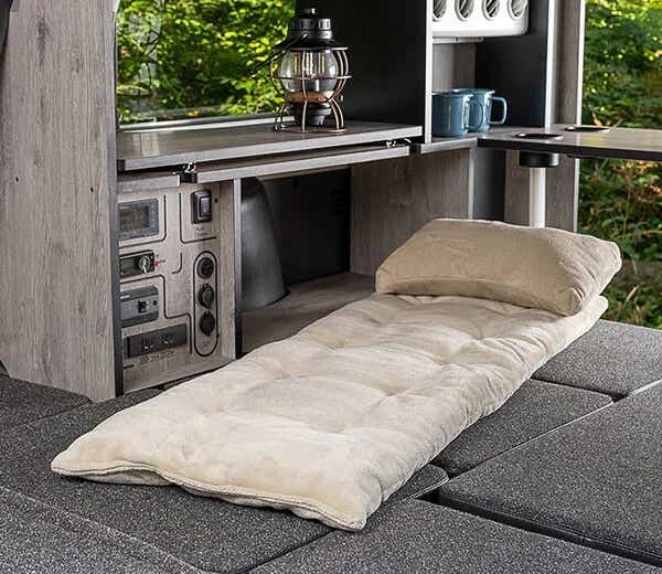 折りたためばクッションとして使え、コットの上に広げれば底冷え対策にもひと役。シーンに合わせて使い分けできる汎用性の高さが魅力です。