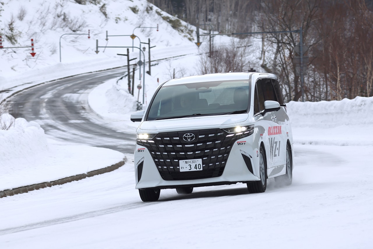試乗ルートは旭川の市街から旭岳へのアプローチ、そして旭岳スキー場までのアクセス道路の往復で、アクセス道路は片道20分ほどのルートを車種を変えて、上り、下りでテストした。試乗車はさまざまなモデルが用意され、 N-BOX、ヤリス、クラウンクロスオーバー、アルファード、カローラ、RAV4、アウディQ5にWZ-1を装着して走行した。車両はいずれも4WDだった。