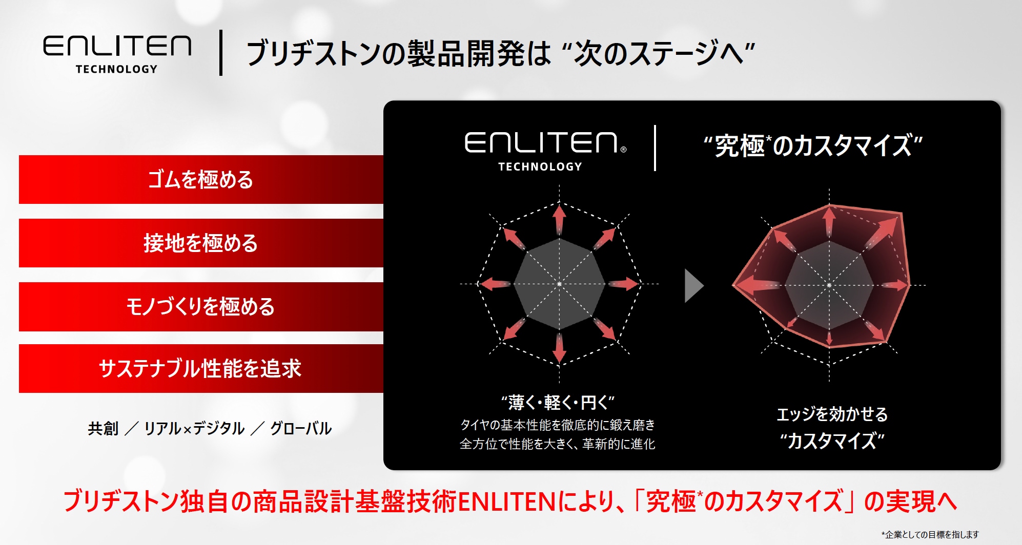 具体的にはENLITENで基本性能は確保し、そこからある性能を伸ばしカスタマイズをしていくことで、全体のレベルアップにつながるイメージだ。