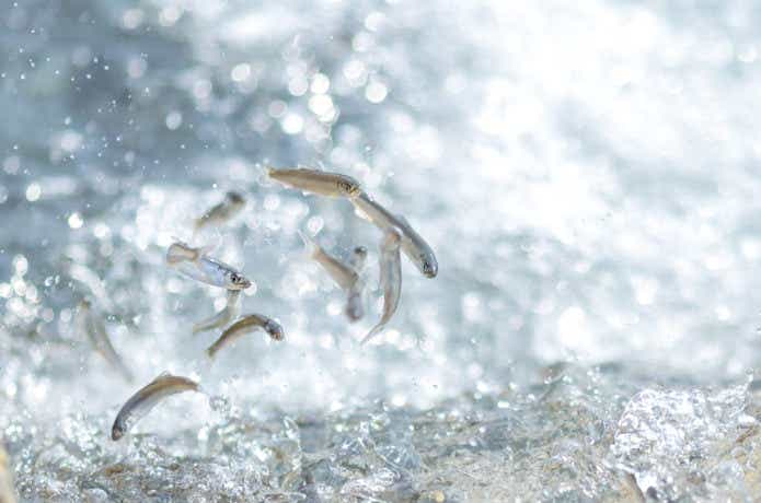 年魚と言えばこの魚、アユでしょう。アユは秋~冬に川の下流域で生まれ、海や湖で越冬します。