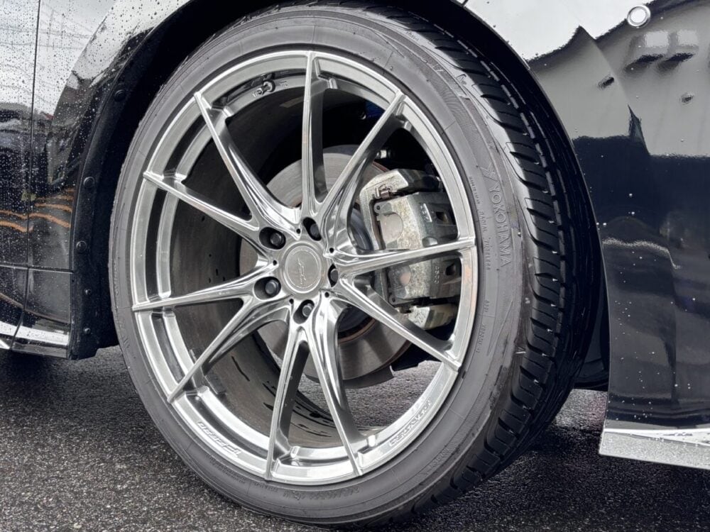 ホイールはウェッズの鍛造ホイール・F ZERO FZ-2(21インチ)にインチアップ。40の扁平タイヤを組み合わせています。