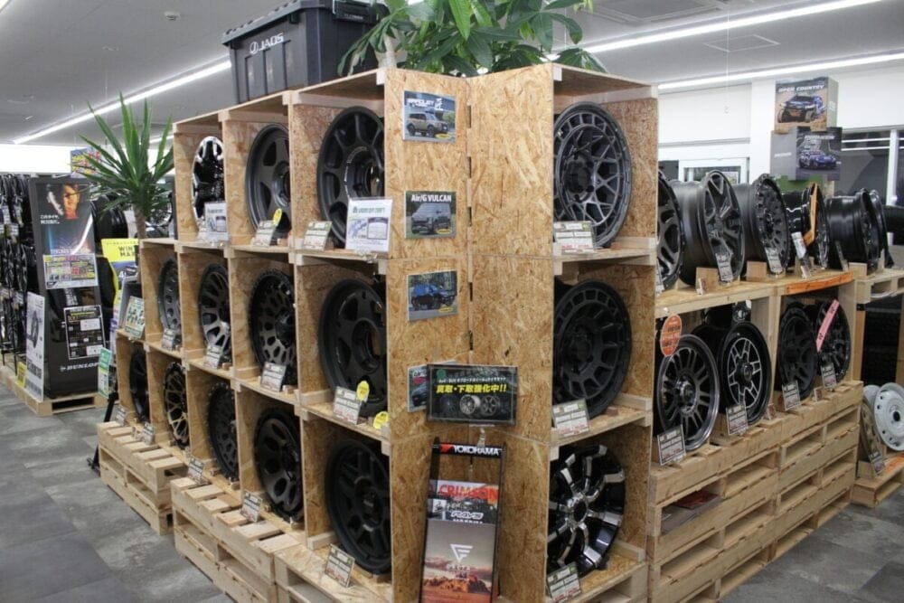 4WD&SUVコーナーにはランクル250、プラド、ジムニー、デリカD:5などの本格4WD・SUV向けのホイール・タイヤ・リフトアップパーツを豊富に展示。