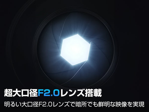 200万画素122度の超広角レンズとF値2.0の大口径レンズの組み合わせで昼夜を問わずクリアな映像を捉えます