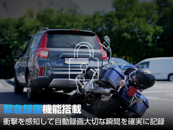 ■Gセンサー搭載:衝突や事故を感知すると瞬時にデータを自動ロック!映像の上書きを防ぎます。