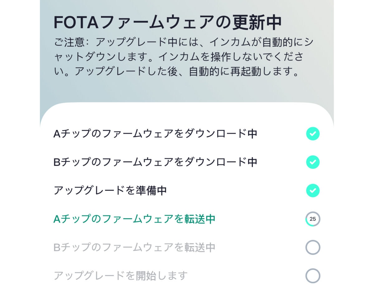 デバイスをWi-Fiで繋いだりPCを使用したり……など面倒な操作は一切なく、アプリを開けば最新ファームアップがある場合でもすぐに分かるので、新機能が加わったらすぐにアプリ内操作のみでデバイスに反映できる。