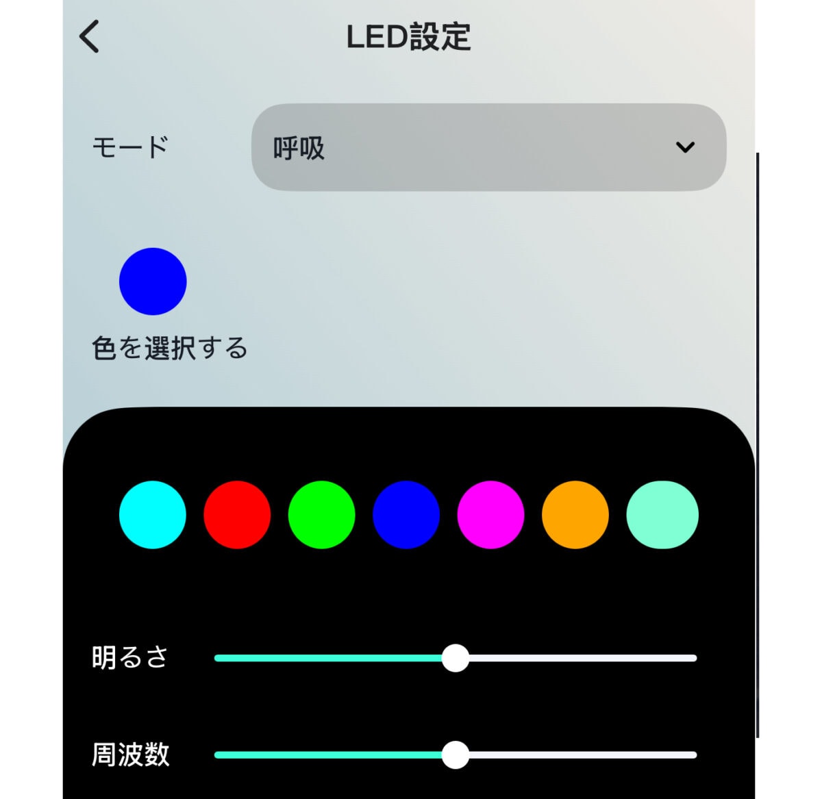 設定から、本体LEDインジケーターの光り方(呼吸/点滅)やLEDの色を変えることも可能だ。