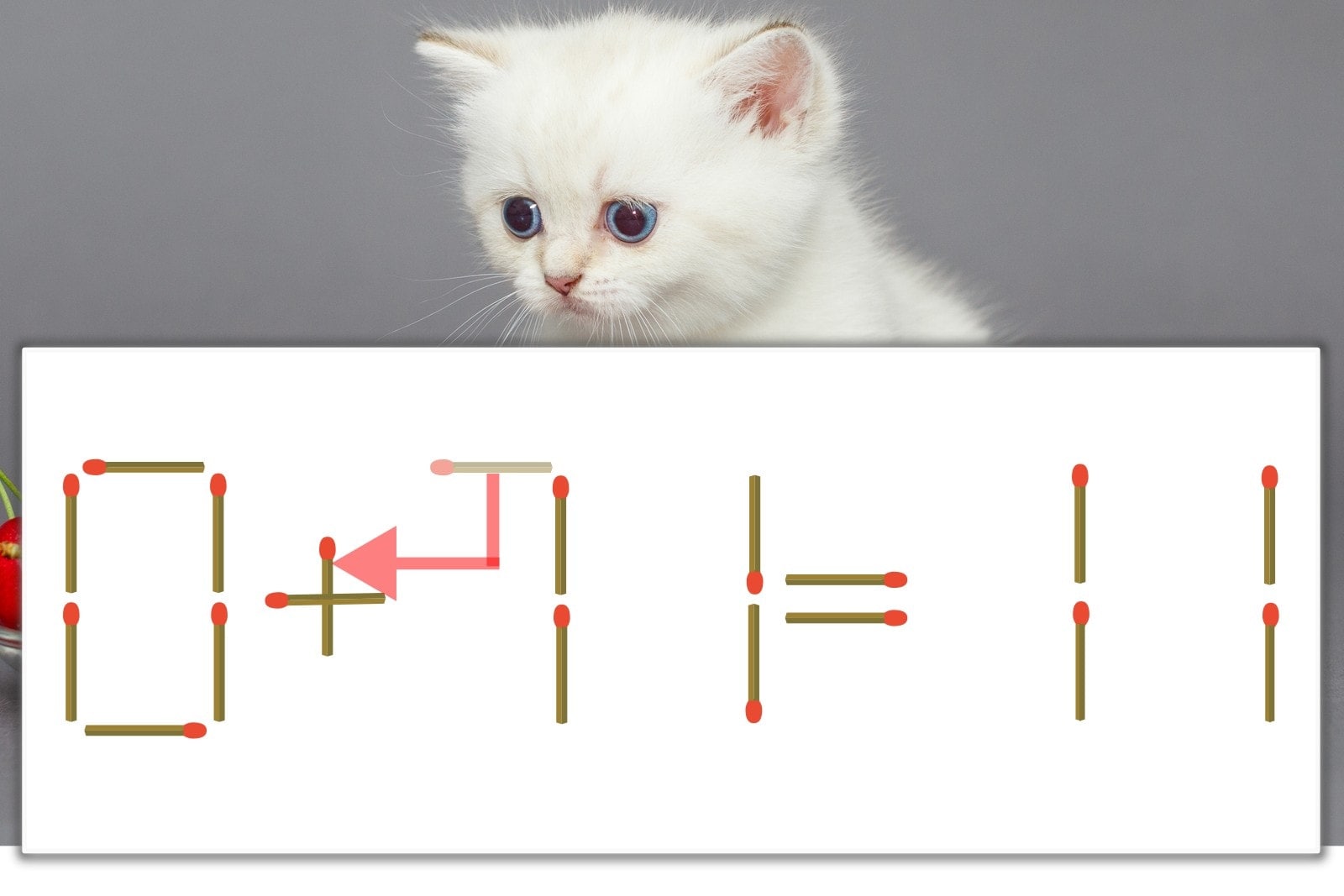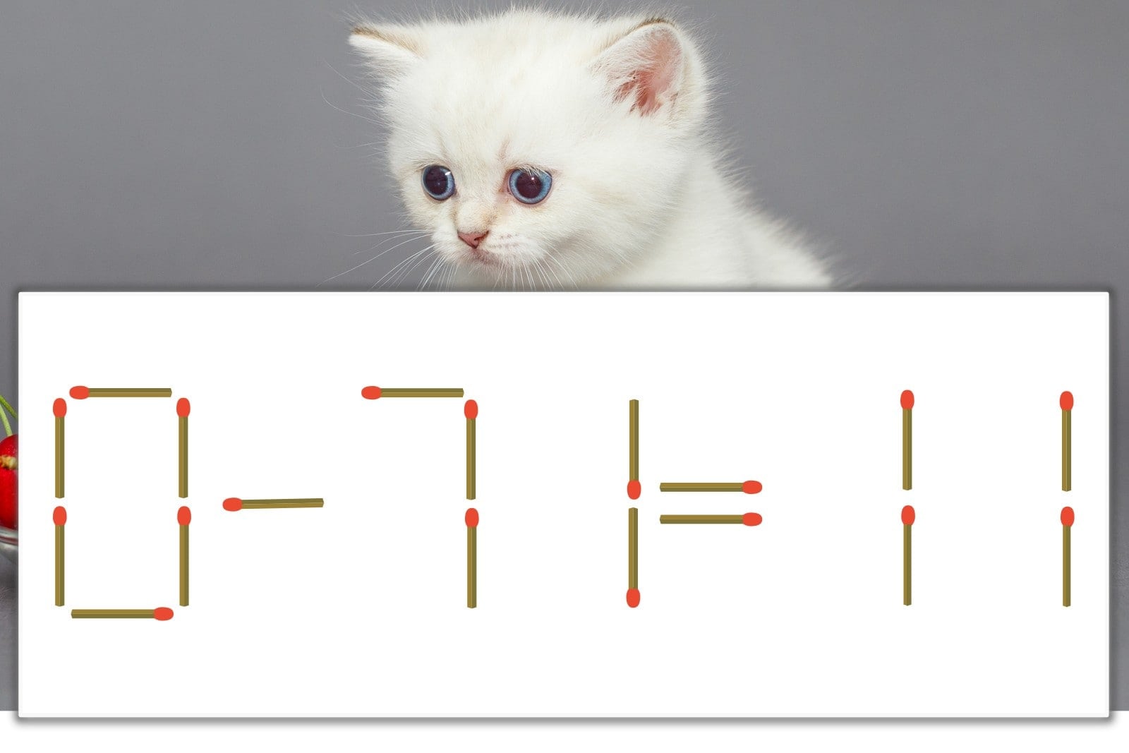 「7」を別の数字に変化させると答えが導き出せます。「7」のマッチ棒を1本移動して、「-」を「+」にしてみましょう。すると、「0+11=11」が成立します。