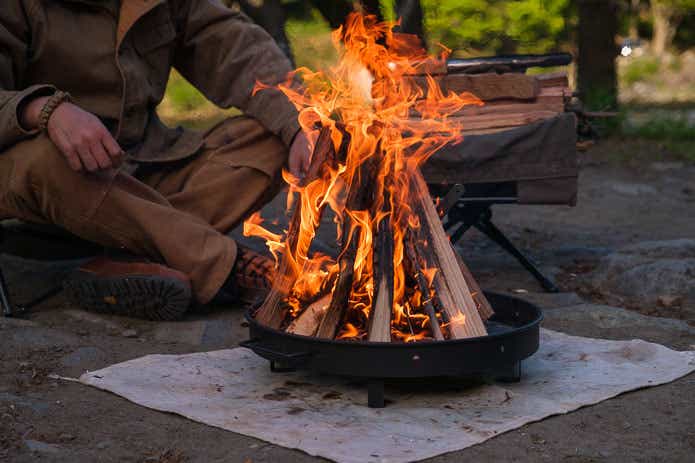 焚き火台に置き、その上に薪を積み上げることで薪の下で空気の通り道を確保し、燃焼効率がアップする優れモノ。少ない薪でもよく燃えて、大小重ねてコンパクトに持ち運べます。