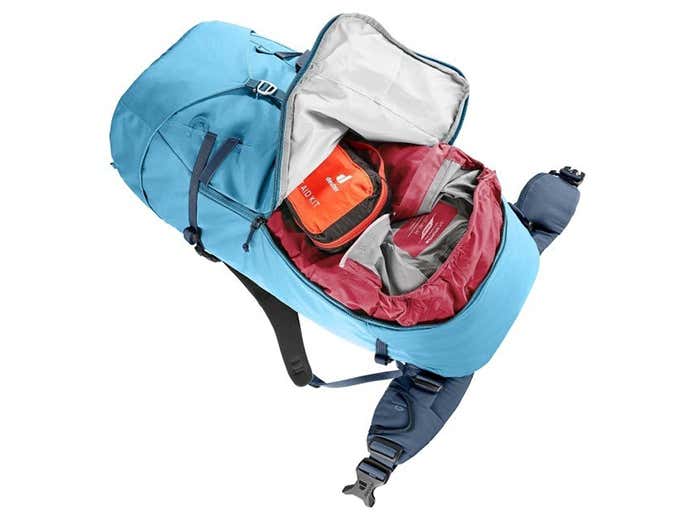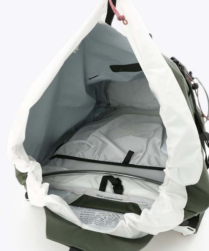 トップには雨蓋がなく、ジッパーで開閉する方式。一般的なザックのようにまずベルトを外して次に巾着部分をゆるめるよりも、荷物の出し入れを素早く行うことができます。開口部もかなり大きく、奥に収納したアイテムへのアクセスも容易です。