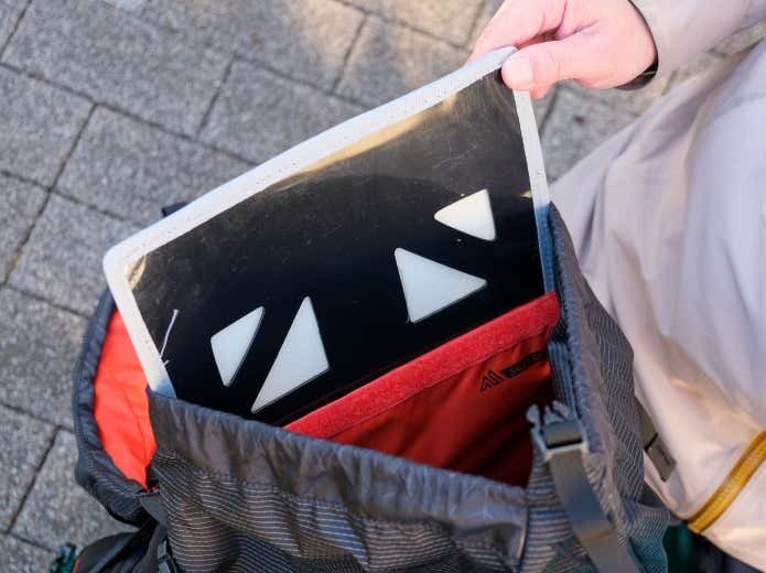 背面に内蔵されたアルミフレームと軽量フレームシートは取り外し可能。抜いた状態であればザック本体をコンパクトに折り畳めるので、アタックザックとして携行したいときにも重宝します。