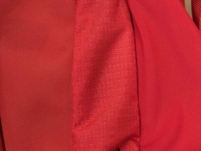 ピッケル・アイスアックス・アイゼンなど鋭利な刃物の干渉にも耐える耐摩耗性・引き裂き強度や、撥水性に優れたUTS(Ultra Tear Strength)コーティングを施した210d Xリップナイロン生地を採用。背面には、快適性を考慮した吸湿性のあるパネルが配置されています。雪が付着しにくいフラットな仕様です。