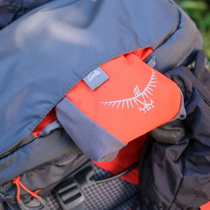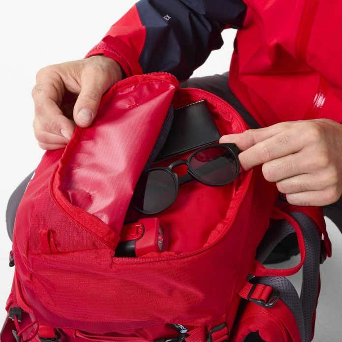 個人的に、パック選びで重要視しているのが雨蓋の大きさ。スピード30の雨蓋はテルモスと行動食が入るサイズで、さっと休憩したい時に本体を開けずに済むのが良いですね。