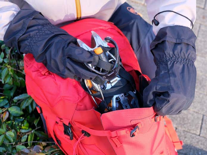 - 堅牢性を備えた生地により、アイゼン・ピッケルでの破損を防止