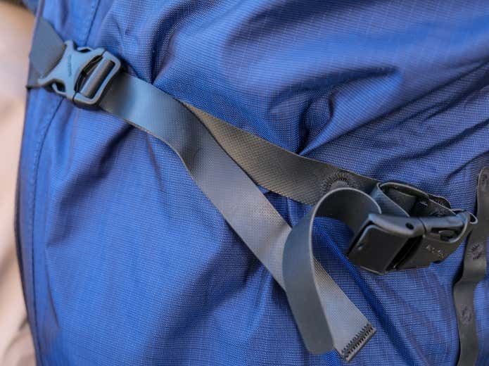 もともとはアルパインクライミング向けに開発されたため、ギアループやデイジーチェーンなどの便利な機能を搭載。コンプレッションベルトの位置の変更も可能です。