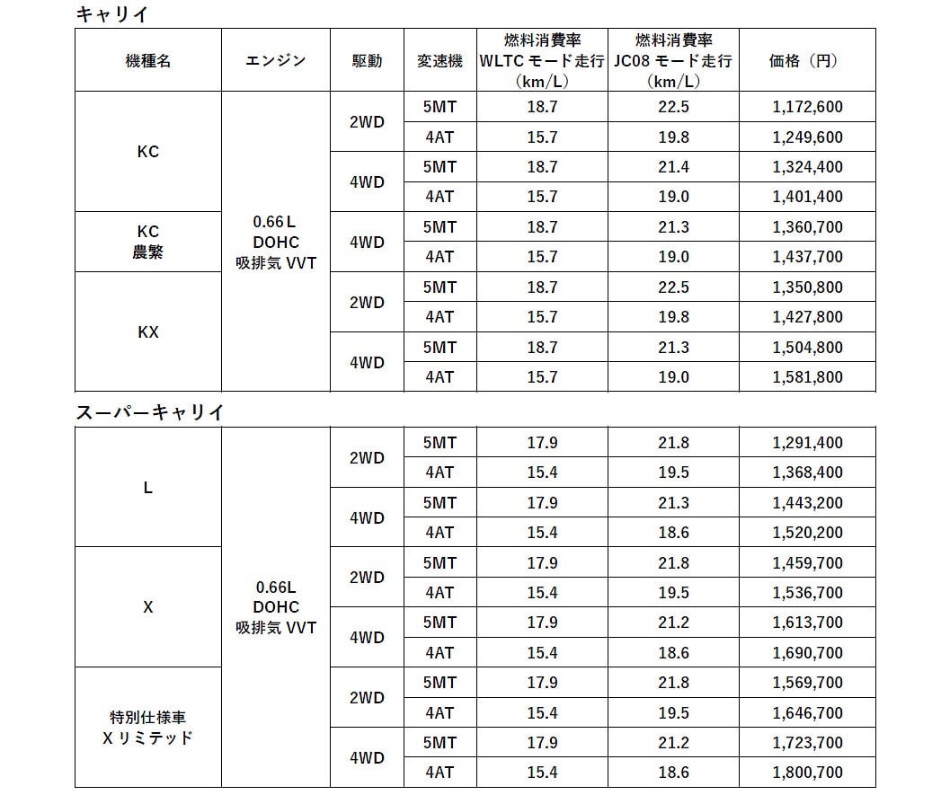スズキは2025年12月19日、軽トラック「キャリイ」、「スーパーキャリイ」、「スーパーキャリイ 特別仕様車 Xリミテッド」、「キャリイ特装車」を一部仕様変更して、2026年1月23日から発売すると発表した。
