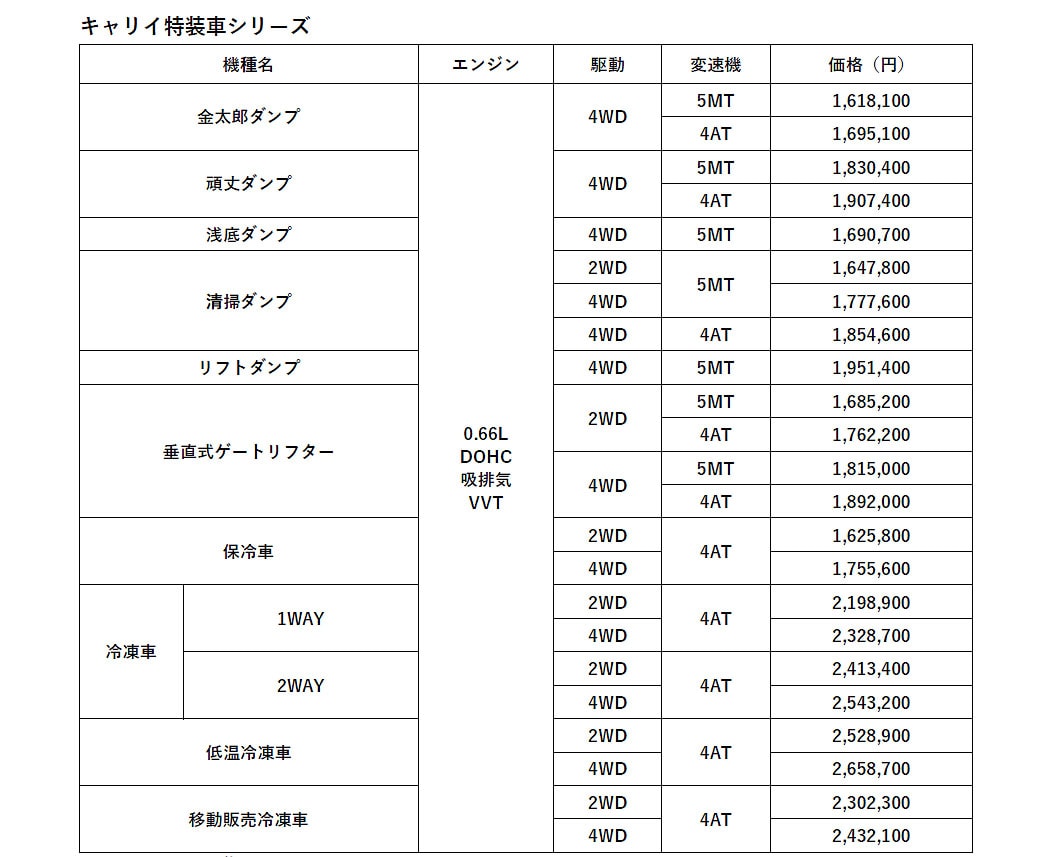 その他、「キャリイ特装車」には、清掃ダンプの4WDに4速ATモデルをを追加した。