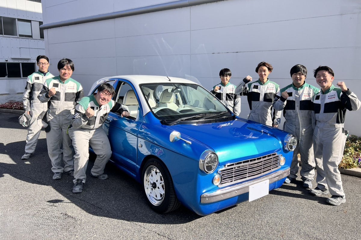 ベース車両には、カスタマイズ科2期生が製作した「イタルマーチ」(K13マーチ)と312ブルーバードを採用。サイズの異なるブルーバードをマーチのサイズに再構築するという技術的に難しい課題に挑みながら、随所に徹底的なこだわりを反映し、マーチのかわいらしさとブルーバードの丸みのある上品なデザインを併せ持つ、パイクカーのような外見に仕上げている。
