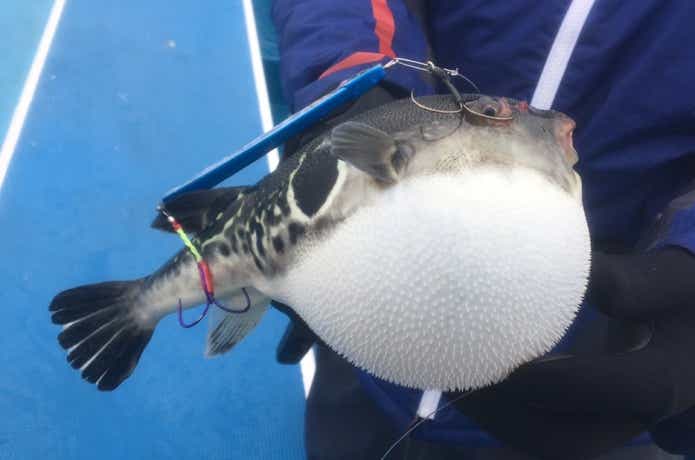 ショウサイフグを釣っていると混ざって釣れることもあります。