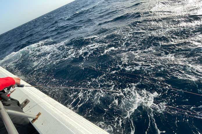 船が波に持ち上げられたら少し出る程度のドラグ調整をマメにして、巻き上げる際も船が波で上がったタイミングはリーリングを止めるなど、ゆっくり巻いてテンションを一定に保ってください。