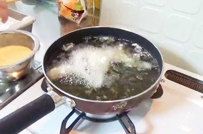三枚に卸して、まんべんなく天ぷら粉をまぶしたら油で揚げましょう。