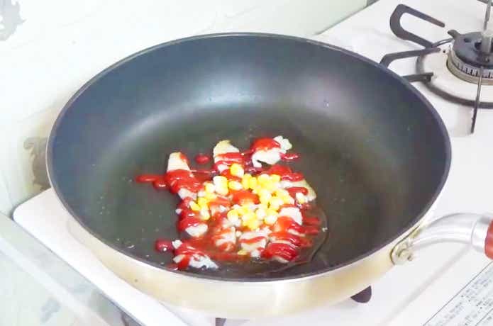 この時にコーンやピーマンなど、ピザの食材に合いそうなものを一緒に入れましょう!