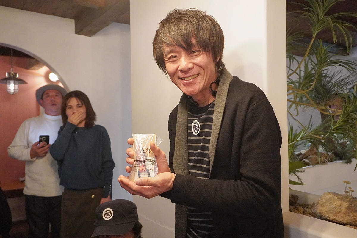 突然、一角でどよめきが起きる。参加者のひとりがクリスマス・プレゼントと称して小さなお菓子の詰め合わせを配ったのだ。その心使いに感激する参加者たち。仲間通しの絆が強いことを感じさせるシーンだった。