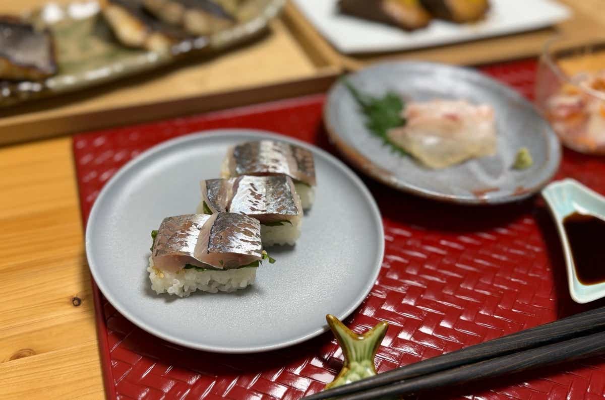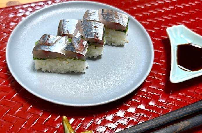 釣りたてのアジは旨みが強く、押し寿司との相性も抜群。