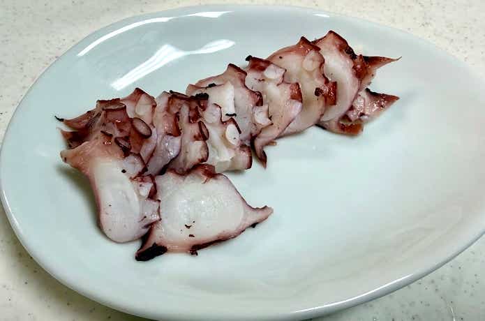 ②冷蔵庫から取り出し、昆布を外したら削ぎ切りにしてお皿に盛り付ければ完成です。
