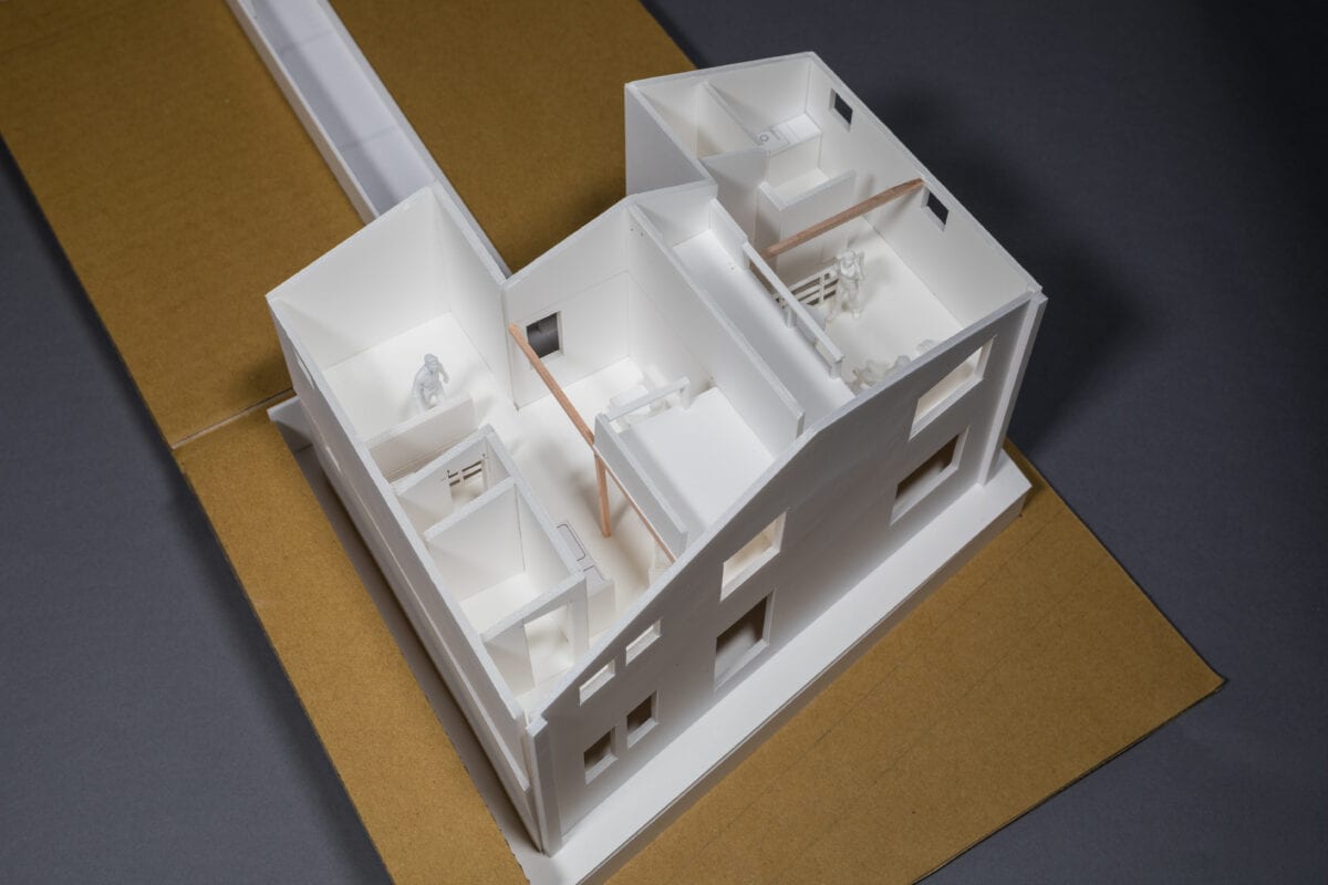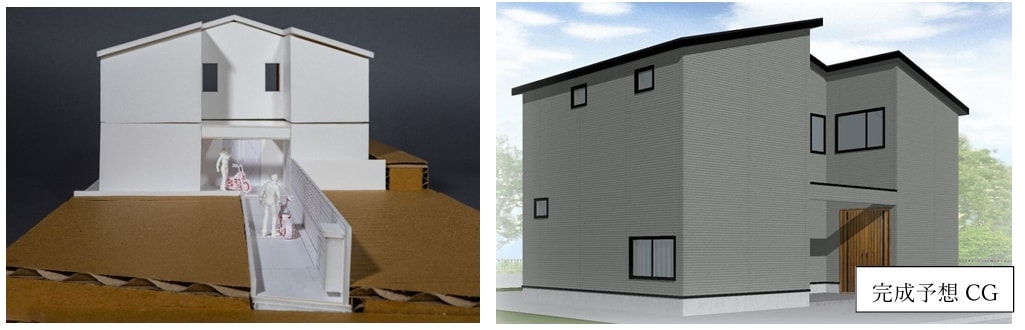 居住スペースをすべて2Fに置くことで、バイク用ガレージと居住性を両立した部屋となります。