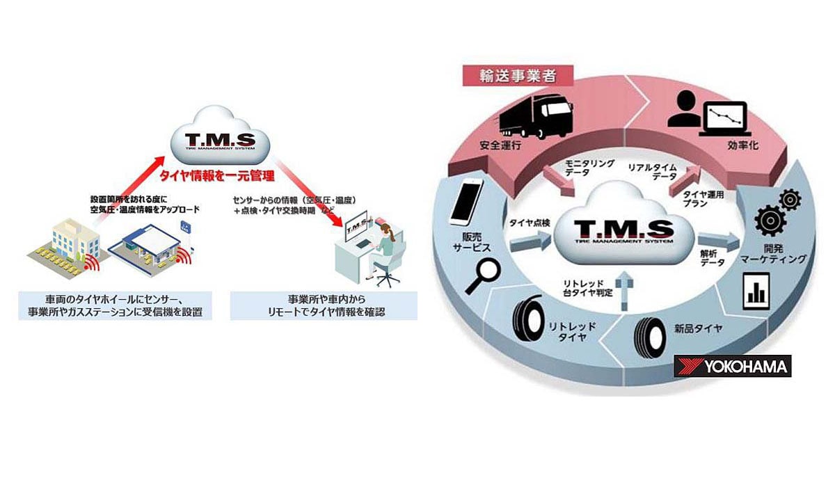 横浜ゴムは、空気圧、温度、摩耗状態をリアルタイムかつリモートで可視化する技術や、AIを活用した空気圧判定技術など新たなタイヤソリューション技術の開発を先駆けて推進しており、これらを「T.M.S」に連携することでタイヤマネジメントシステムのさらなる進化に取り組んでいる。
