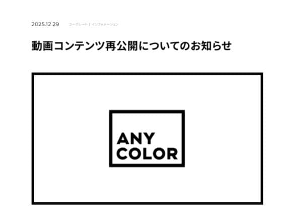 日頃よりバーチャルライバーグループ「にじさんじ」・「NIJISANJI EN」を応援いただき、誠にありがとうございます。…— ANYCOLOR株式会社 (@ANYCOLOR_Inc) December 29, 2025