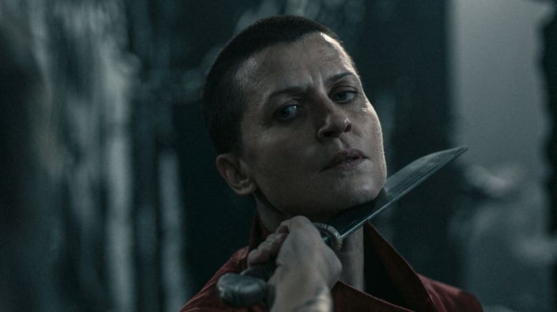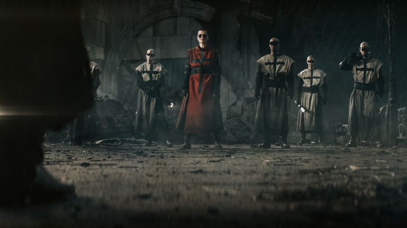映像は、不死身の魔女・アリスが(ミラ・ジョヴォヴィッチ)まさに処刑されようとするシーンから幕を開ける。窮地を脱するため、敵の目をのぞき込み、魔術を発動するアリス。難を逃れた彼女は、処刑人・アッシュ(アーリー・ジョヴァー)を追い詰め、その首元にナイフを突きつける。しかし次の場面では、サングラスで目を覆うという物理的手段でアリスの魔術に対抗するアッシュたちの姿が。「復讐の神だ」と、得意げにアリスを挑発する。