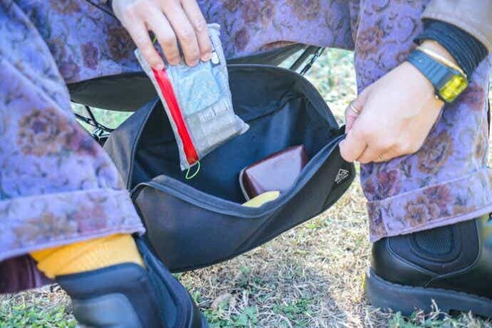 さらに、座面下に収納袋を付属のカラビナで吊り下げれば簡易ポケットに。収納力と快適性が一台にまとまった最高のチェアです。これを持って、今年も島キャンプへ行くのが楽しみです。