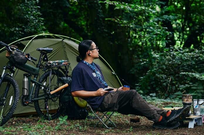 毎年、離島でキャンプをするので「軽くてくつろげるチェア」を探していたところ、このチェアに出会いました。まさかの肘置き付きで快適性は抜群。それでいて約1,500gという軽さも両立しているのは驚きです。クラウドファンディングで見つけて、即決でした。