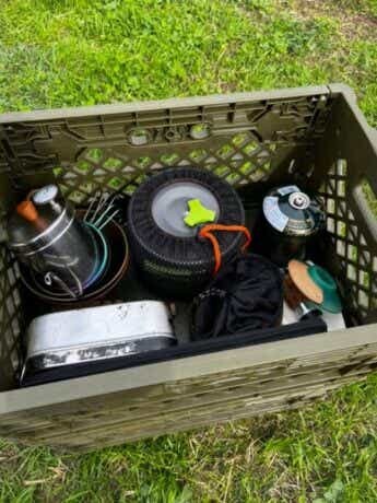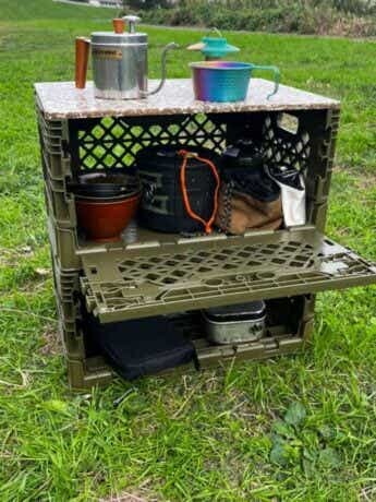 キャンプ用のコンテナは各社から出ていますが、「これだ」と思えるものがなかなか見つかりませんでした。FLIP BOXは収納力も抜群で実用的、そのまま棚として活用できるのも利点で、何よりオシャレ。