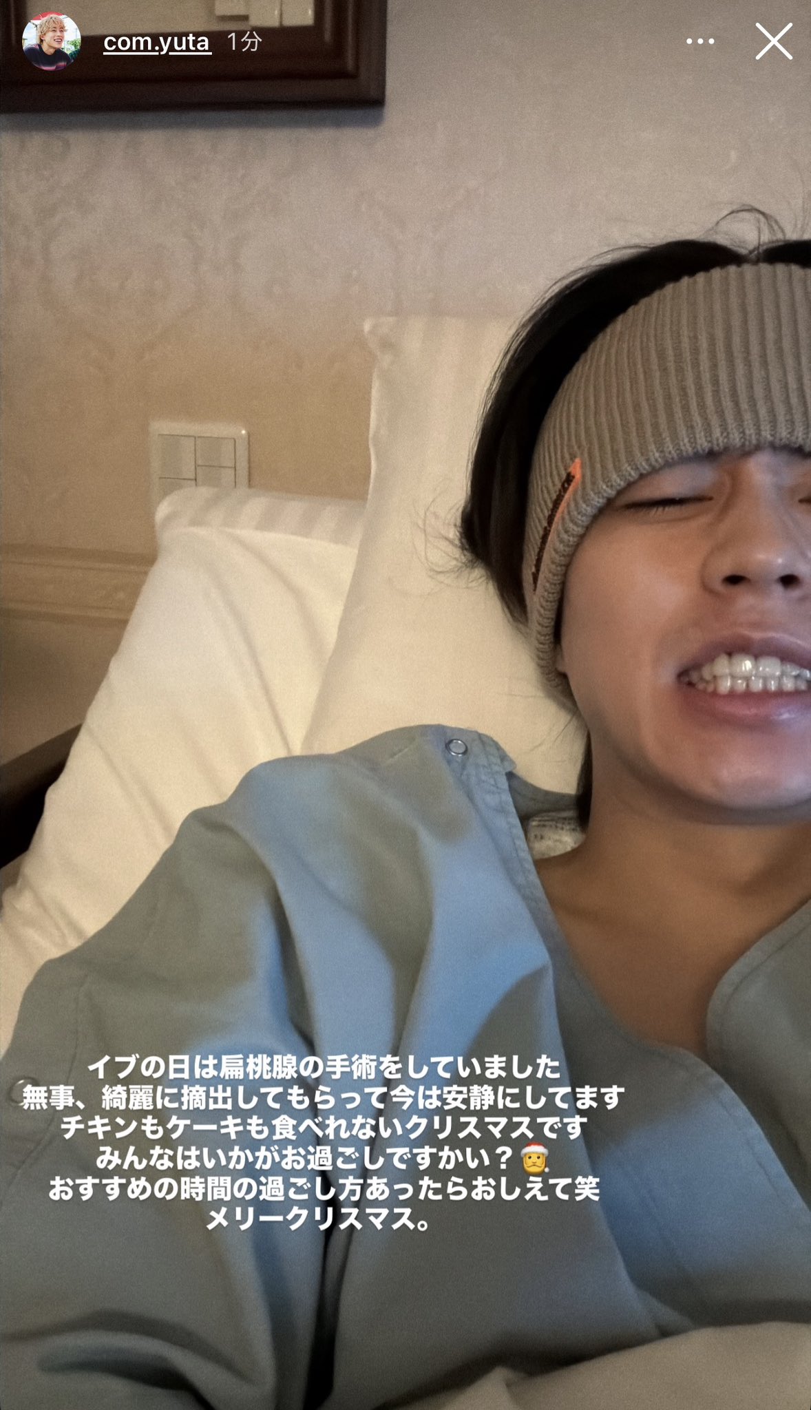 この動画内ではまだ手術を受ける前でしたが、ゆうたはインスタグラムのストーリーズにて24日のクリスマスイブに手術を受けたことを報告。そして31日には無事に退院したことを報告しています。