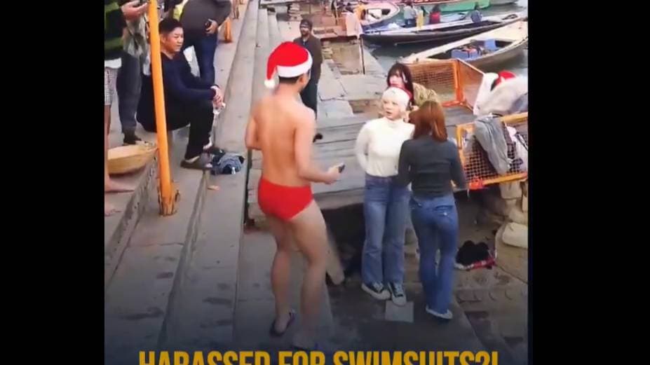 Japanese tourists were mobbed, harassed, and verbally abused in Varanasi — then forced to apologise for wearing a swimsuit and a Santa Claus hat.