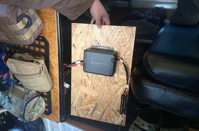 タグチ:また、とりあえずOSB合板にネジ止めしたけれど、車内のどこに置くのが正解なのか、実は半年経っても決まっていません。