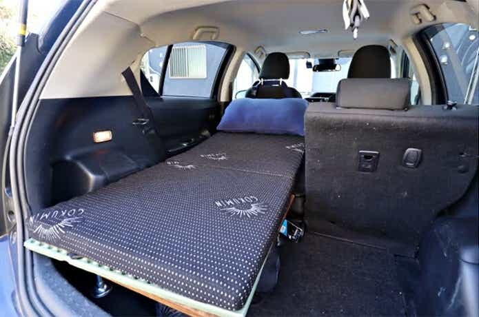 近藤:そして、ラゲッジが丸っと空いたことで、アクアでの車中泊まで可能に。