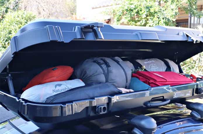 よく見る流線形のルーフボックスとは異なり、スクエア型で無骨なデザインが特徴的なこちら。その実用性はいかほどなんでしょうか?