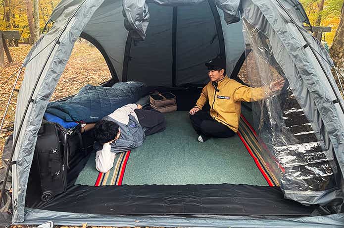 マツダ:これまで、家族キャンプ時は車中泊メインでしたが、子供も大きくなり、しっかりテント泊を体験させたいと思うように。