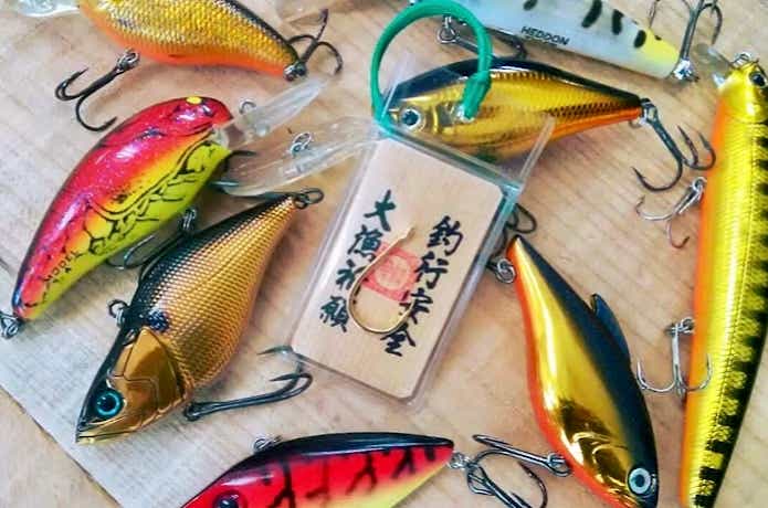 住吉大社には、ルアーの形をした海上安全大漁御守があります。