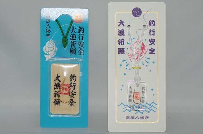富岡八幡宮には「釣行安全・大漁祈願守」という2種の釣り人守りがあります。