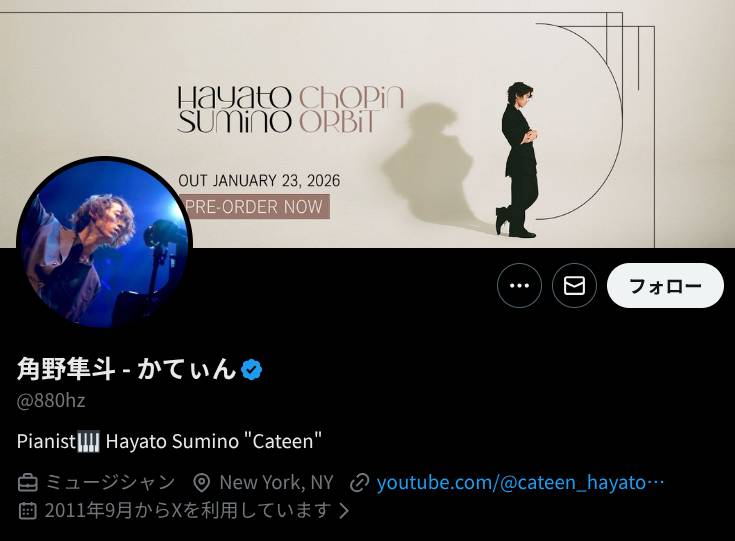 ピアニストで、YouTubeでも活動する「かてぃん」こと「角野隼斗」(登録者数152万人)が、2026年1月1日、結婚したことをXで発表しました