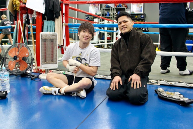 川満はそう考えている。拳四朗がライトフライ級を主戦場にしていた頃、スパーリングでは常に"世界"を意識して胸を借りた。川満にとって拳四朗は、昔もいまも近くて遠い存在。憧れであり、目標であり、そしてライバルだ。そんな川満の存在は拳四朗にとっても、闘争心に炎を灯してくれる、かけがえのない"仲間"だった。