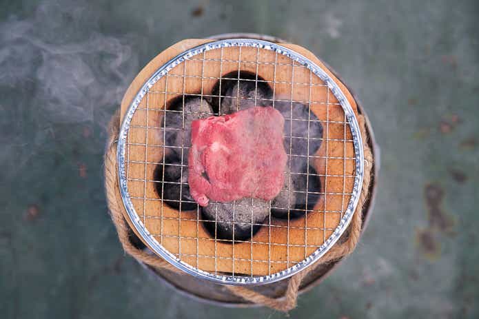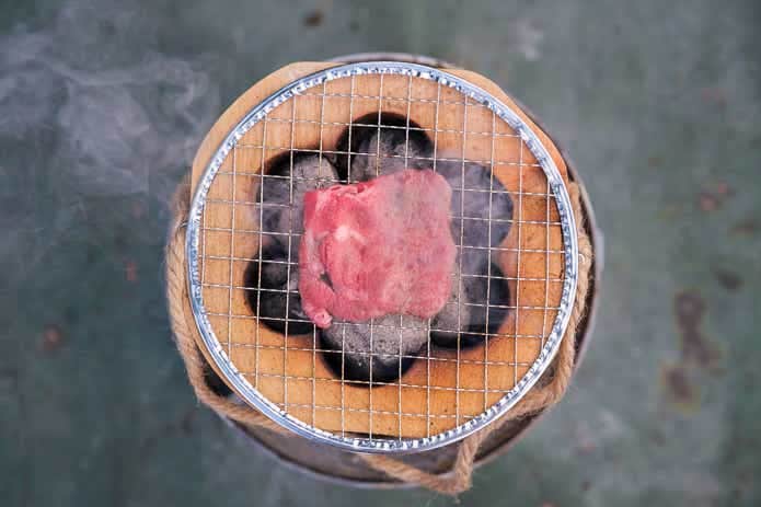 炭が熾きました。まずは牛タンを焼いていきましょう。