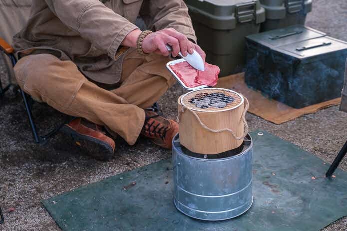 グリルや七輪といった熱源ギアには、それぞれ「燃焼効率がいい」「片付けやすい」「持ち運びやすい」……等々の特長があります。しかし「燻製香がついて美味くなる」というアイテムは本製品が初めて。