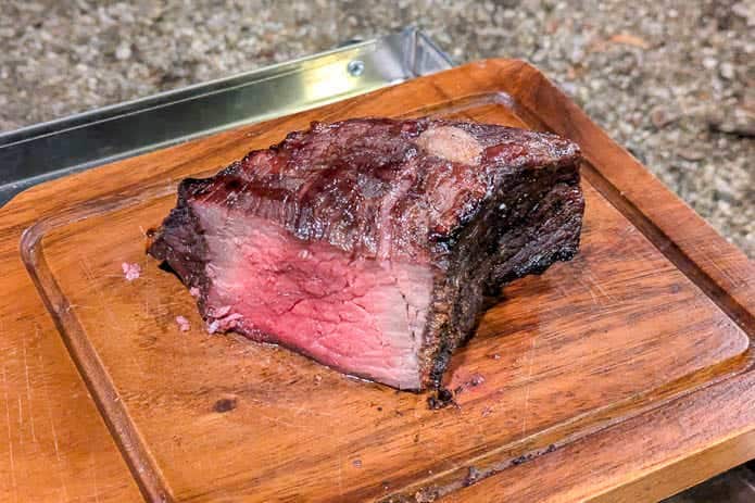 火が強かったので早めに下ろし、レア気味のステーキとなりました。塩コショウだけの味つけだったんですが、やっぱり燻製香が効いていて、とても豊かな味わいに。