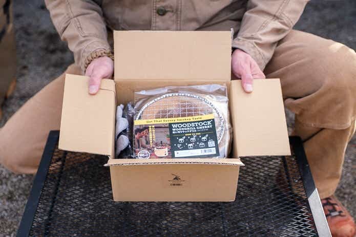Amazonで購入し、届いたパッケージがこちら。木製品に強いブランド・WOODSTOCK(ウッドストック)の「ウッドグリル」という商品です。
